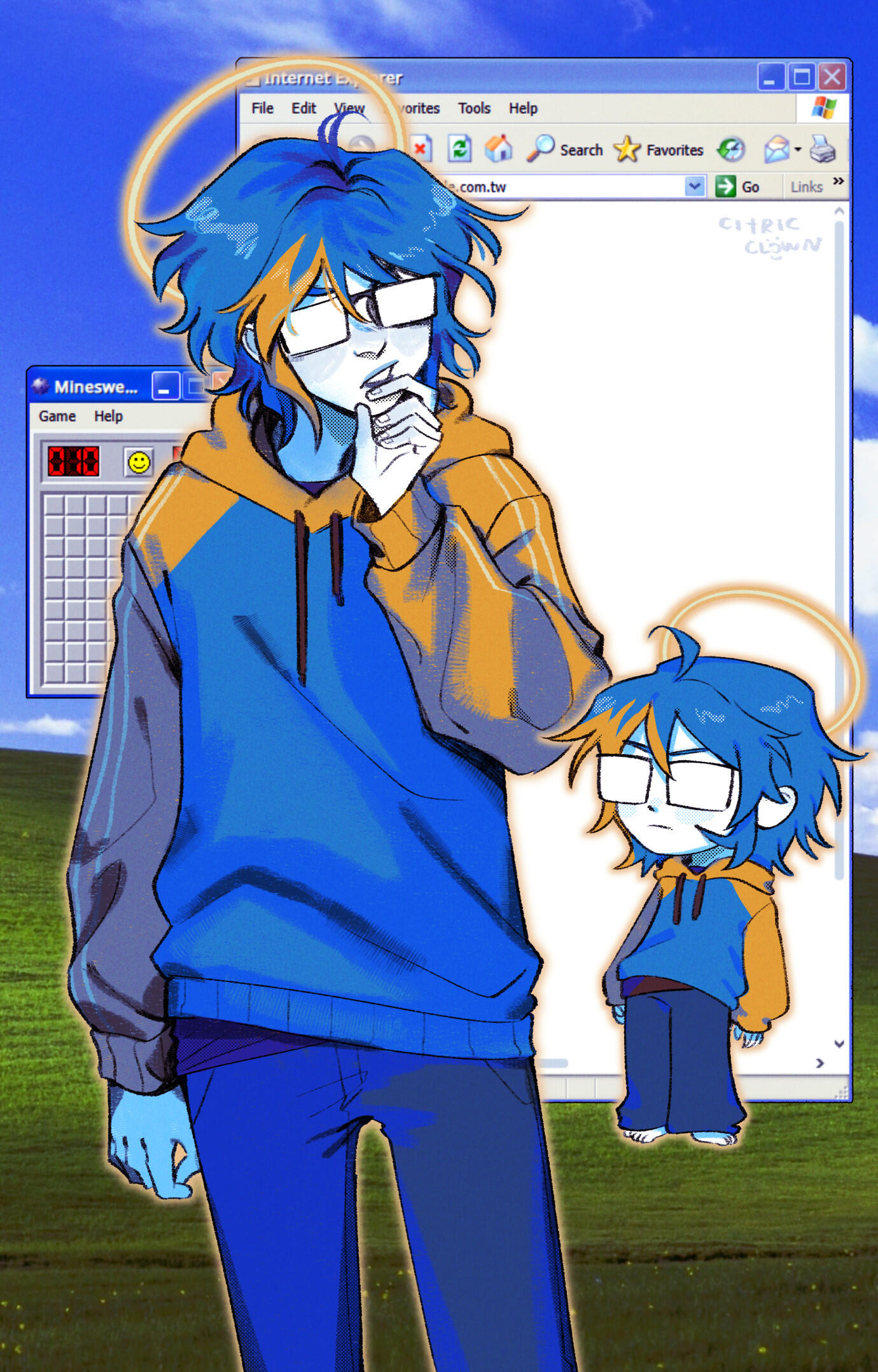 He also has a crush of sorts on an Interweb Explorer from another computer. He often neglects work to spend time with her on his own laptop.